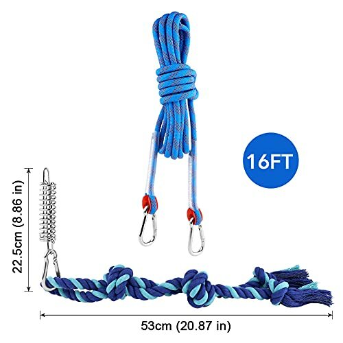 16ft Dog Rope Spring Pole Toy Pull Tether Tug of War Hanging Bungee Toy Outdoor