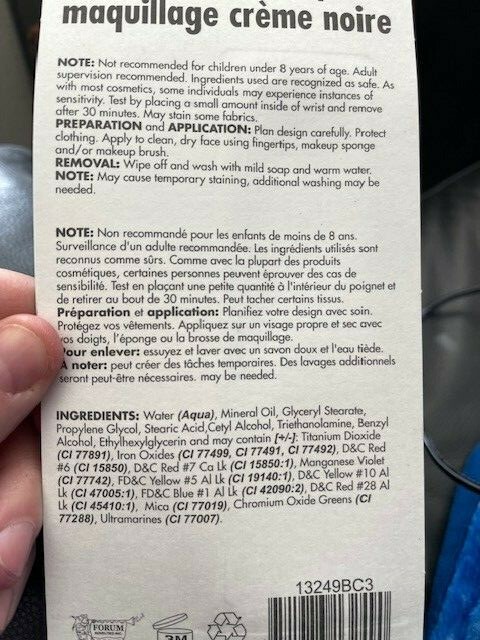 Forum Novelties Black Cream Color Halloween Makeup 1oz. New