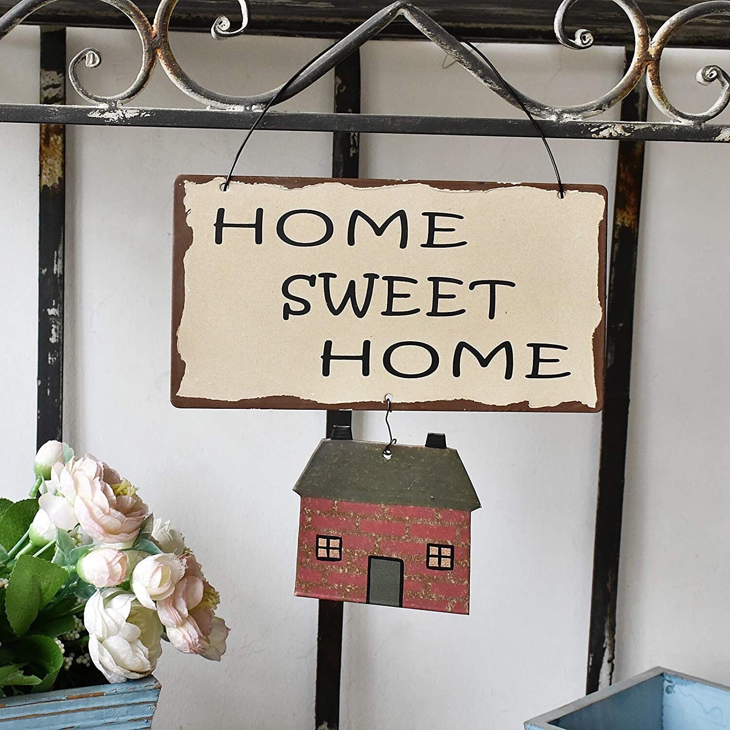 Rustic Metal Home Sweet Home Sign for Home Decor, Decorative Metal Hanging Sign