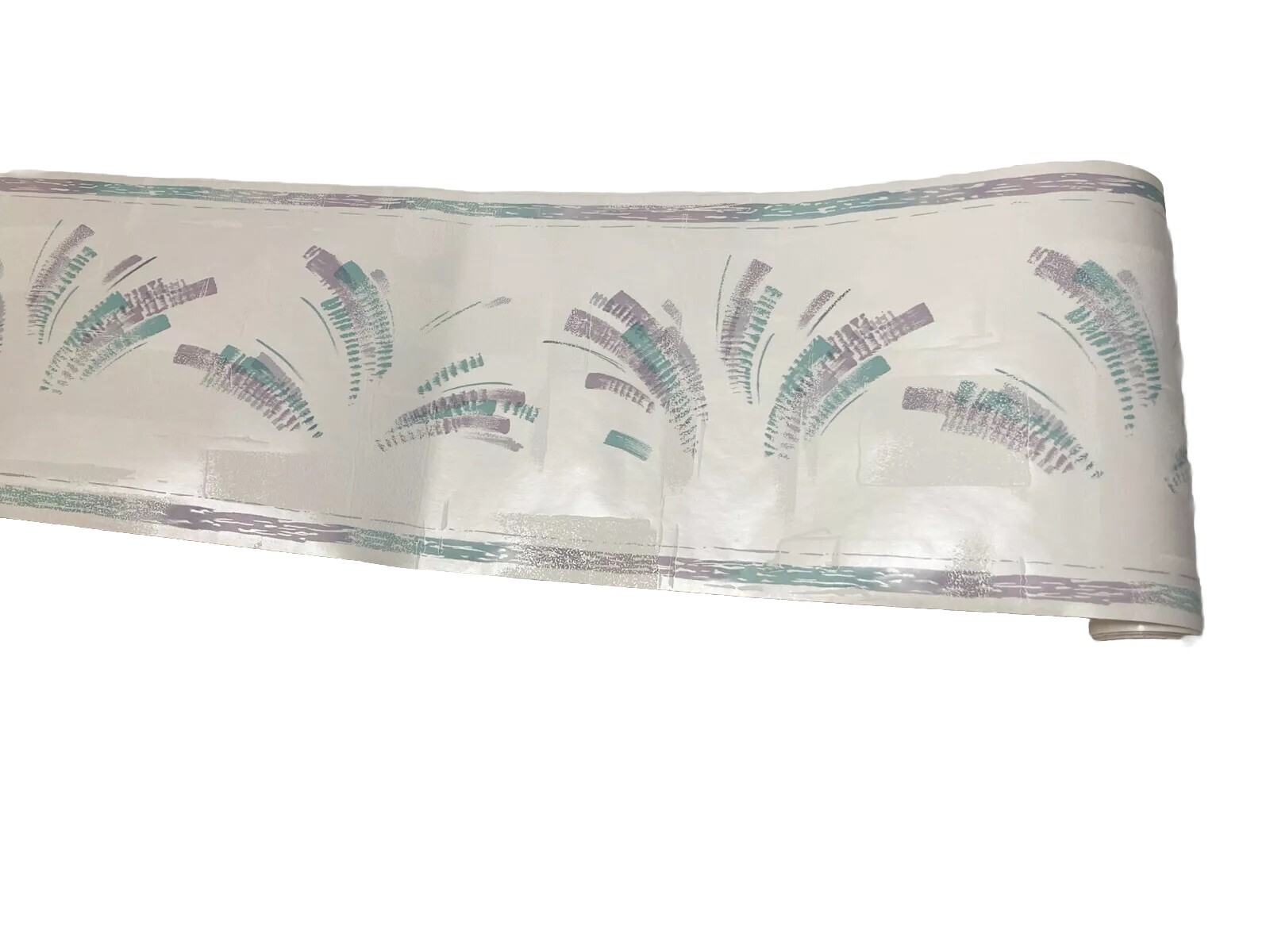 Purple Teal Brush Stroke Abstract Modern White Plaster Sheen Wallpaper Border