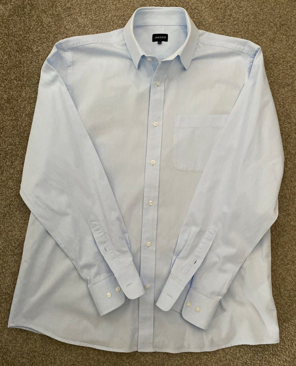 как выглядит GORGEOUS JAEGER BLUE CLASSIC FIT BUTTON CUFF SHIRT 16.5 16 1/2 фото