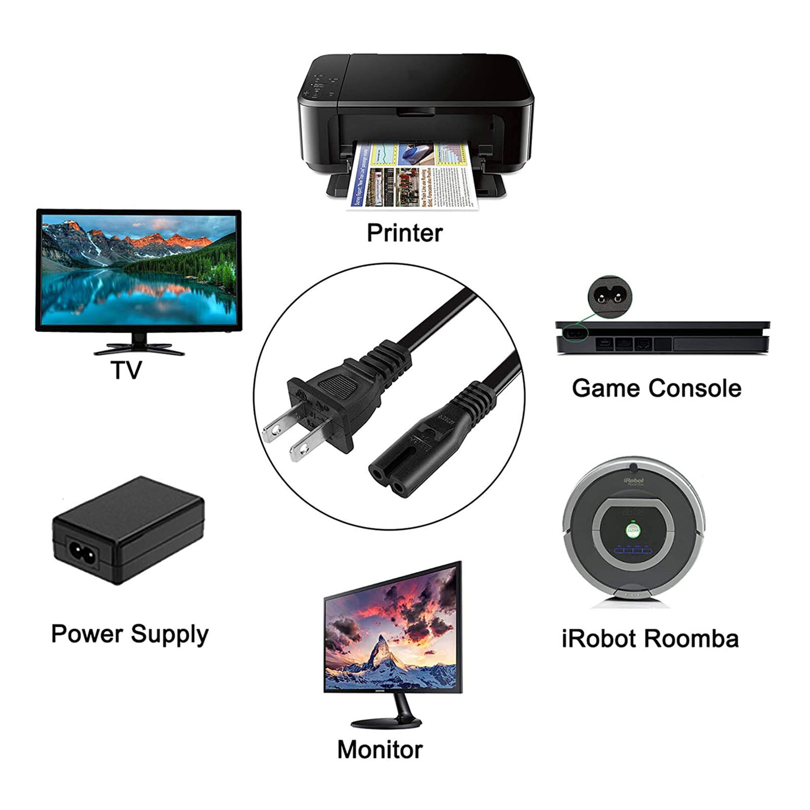 5ft AC Power Cord Cable For HP DeskJet 2655 270 2722 Printer 2-Prong Wire Lead
