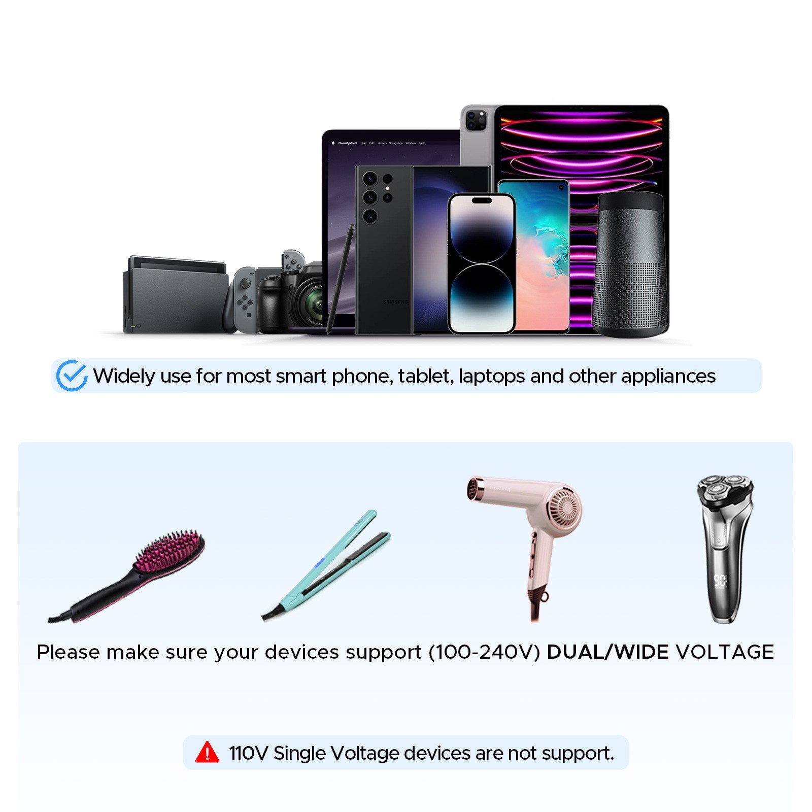 Maximum Compatible Appliance Wattage: Up to 2500W
