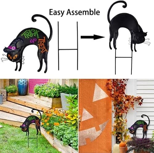 Metal Cat Yard Sign Garden Stake Halloween Outdoor Decoration, Spooky Black Cat