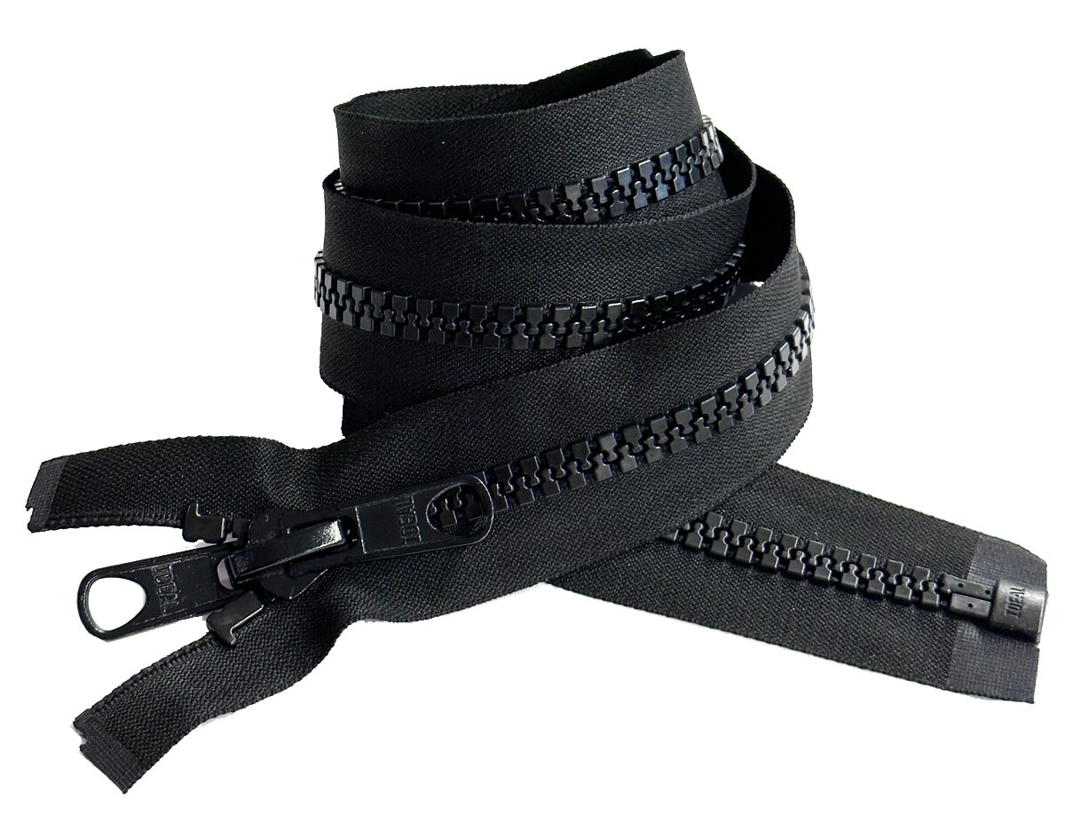 IDEAL 10 4 - 36 Plastic Marine Zippers Separating Double Long Pull-Tab Black
