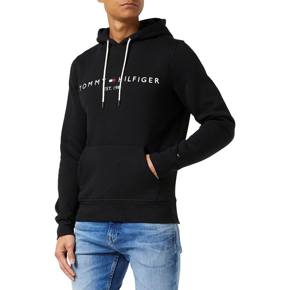 как выглядит Tommy Hilfiger Mens Hoodie Fleece Lined Logo Sleeve Pullover Hooded Sweatshirt фото