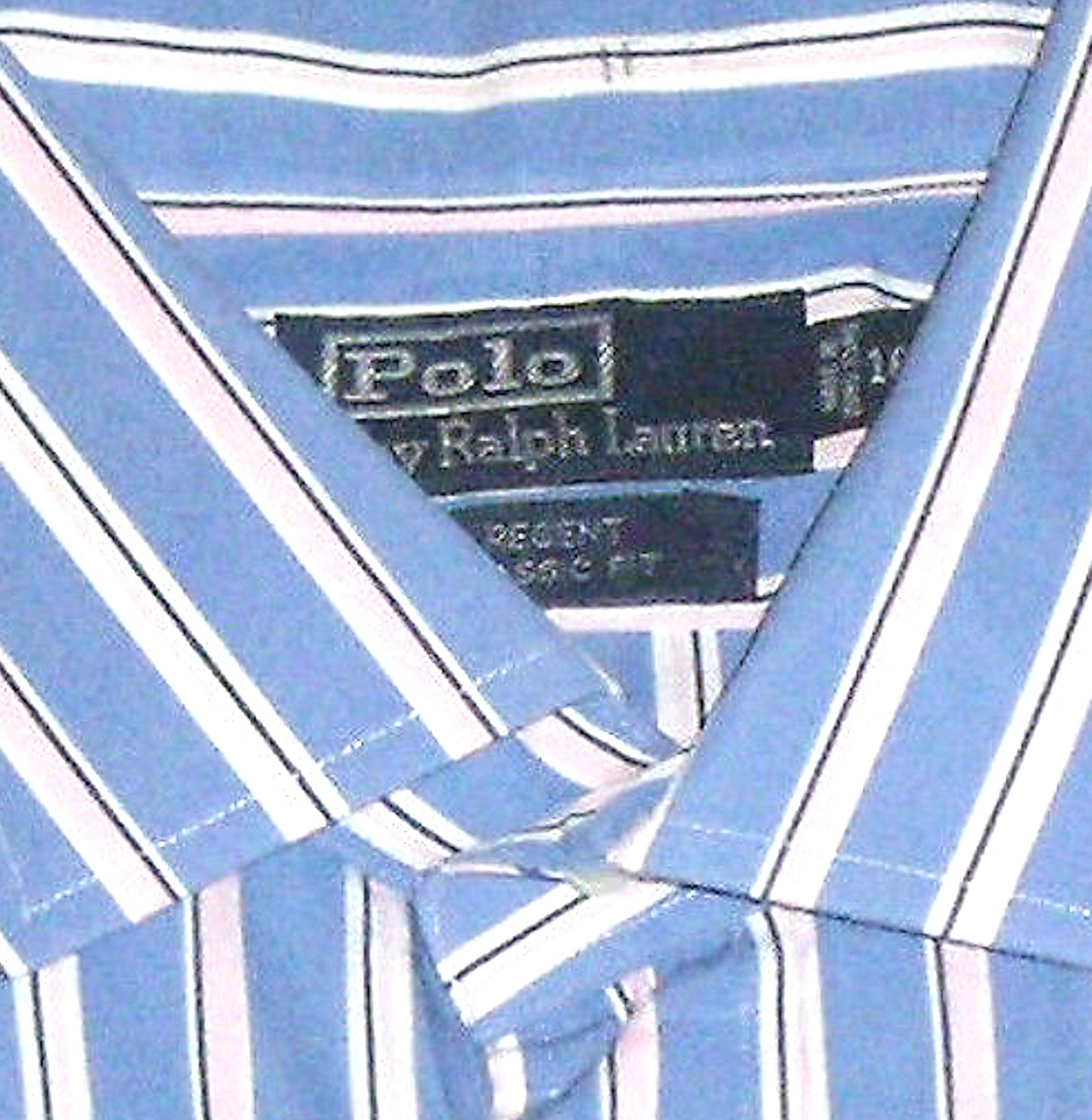 POLO RALPH LAUREN SHIRT 16.5 L REGENT BLUE WHITE PINK STRIPES