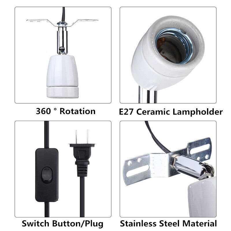 360 Ceramic Reptile Light Heating Lamp Bulb Holder w/ Bracket/Switch E27 Socket
