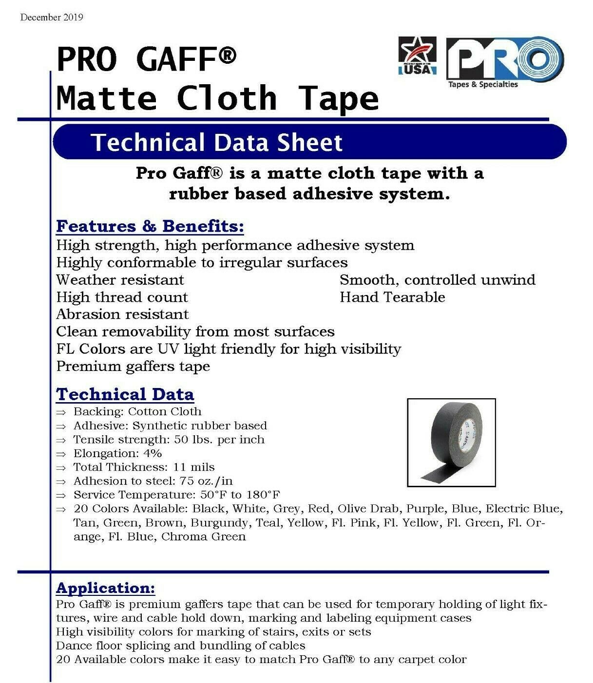 Pro Tapes Pro Gaffer Tape Black 3 x 55 yds.