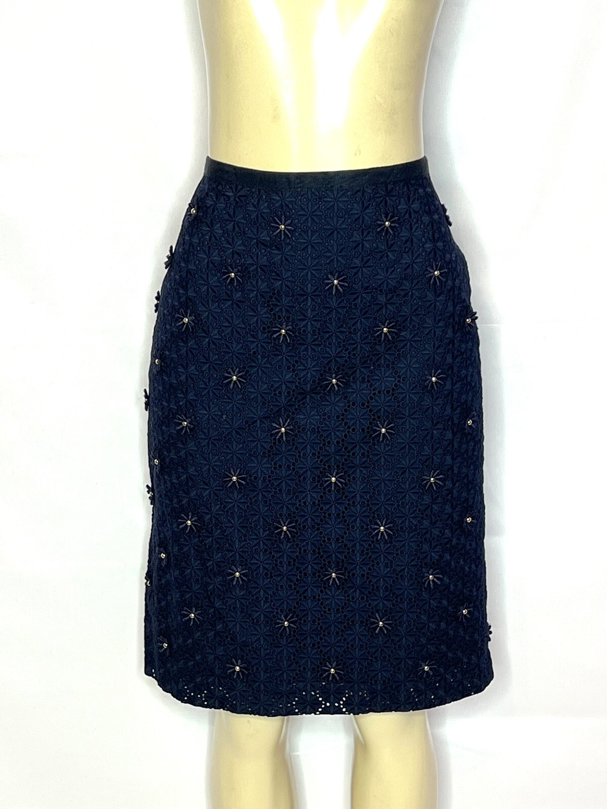 BRAND NEW TALBOTS DARK NAVY COTTON WITH STUDDED FLOWERS STRAIGHT SKIRT SIZE 12