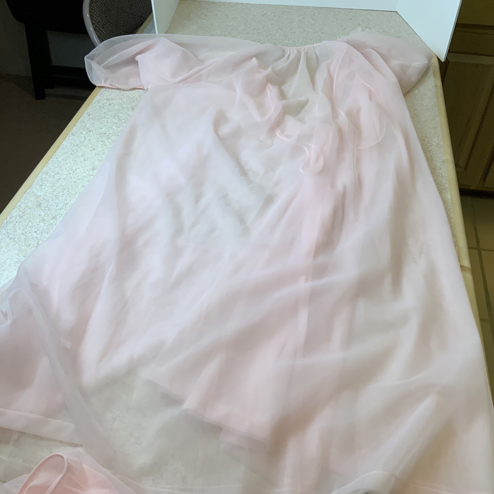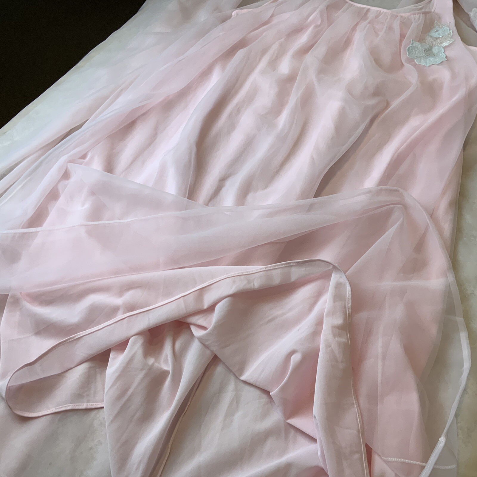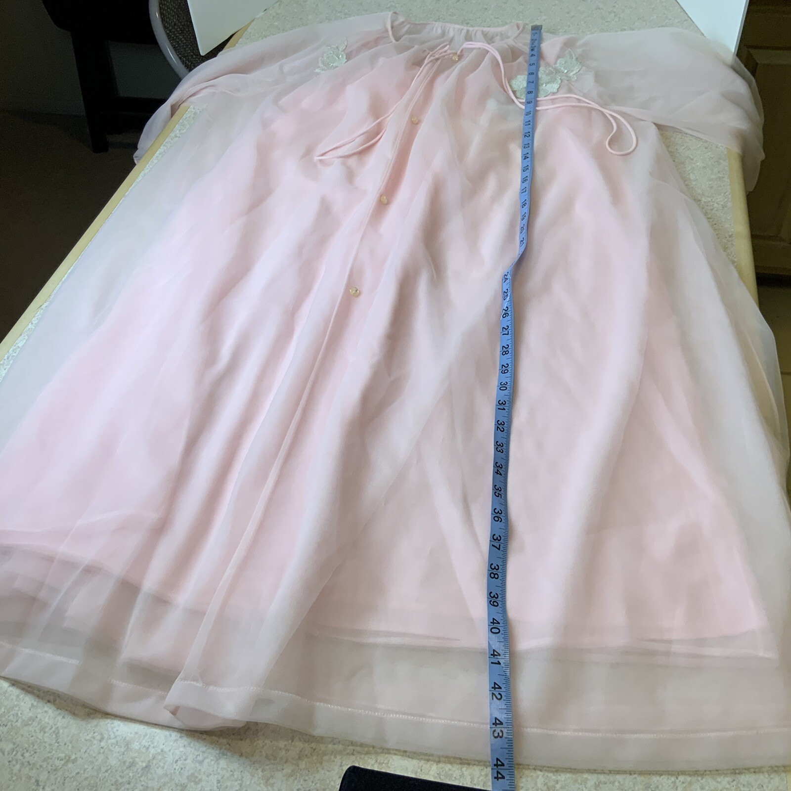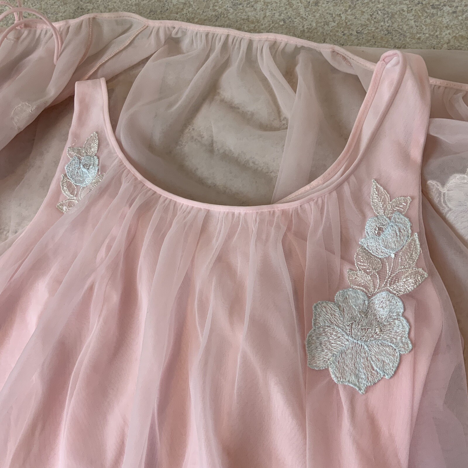 как выглядит VTG Lorraine Pink Chiffon Babydoll Nightgown Robe Set Floral Applique Women s M фото