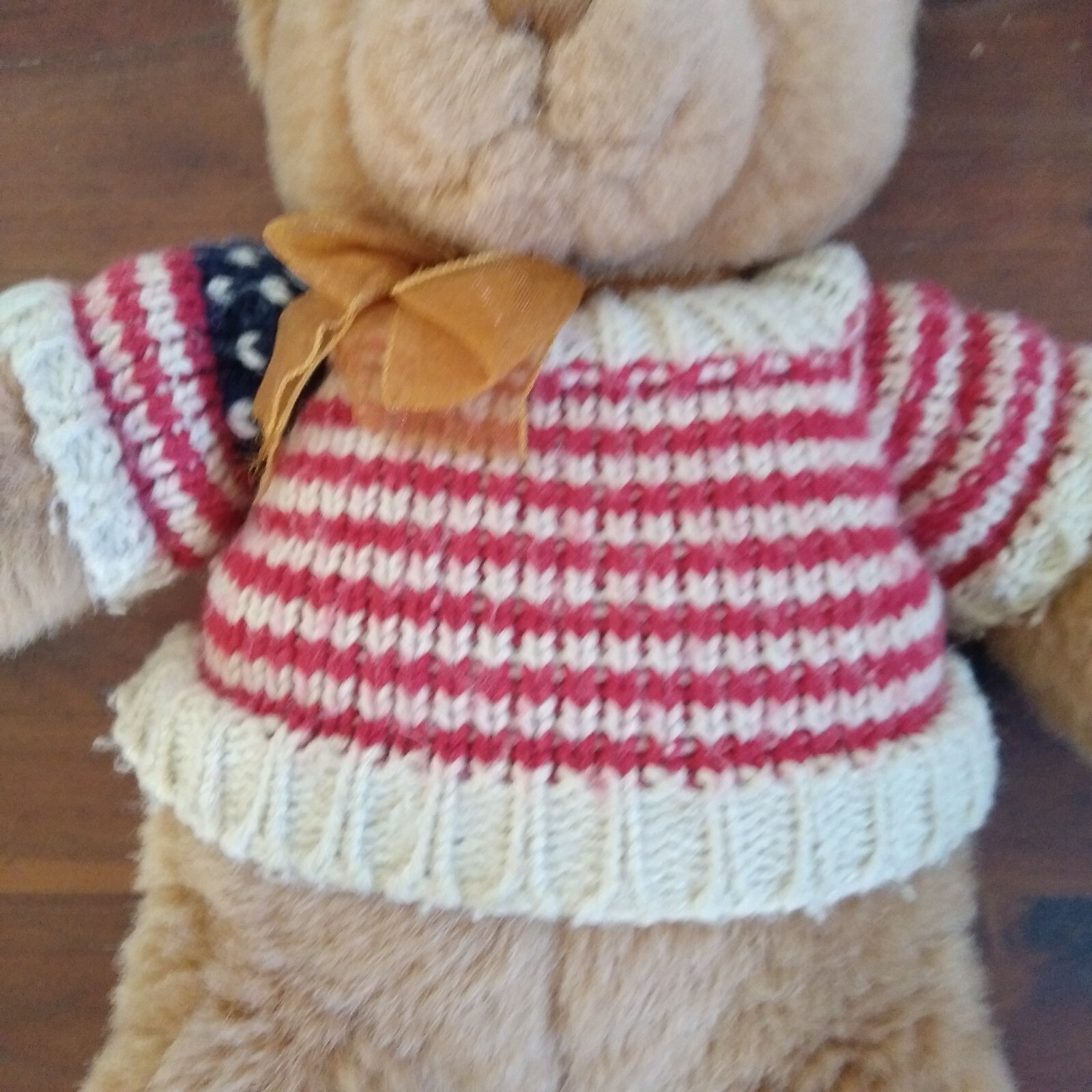 как выглядит Vintage GUND Tender Teddy Plush Brown Bear 6413 Orange Ribbon America 12" фото