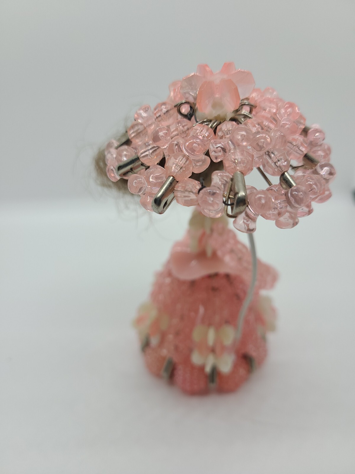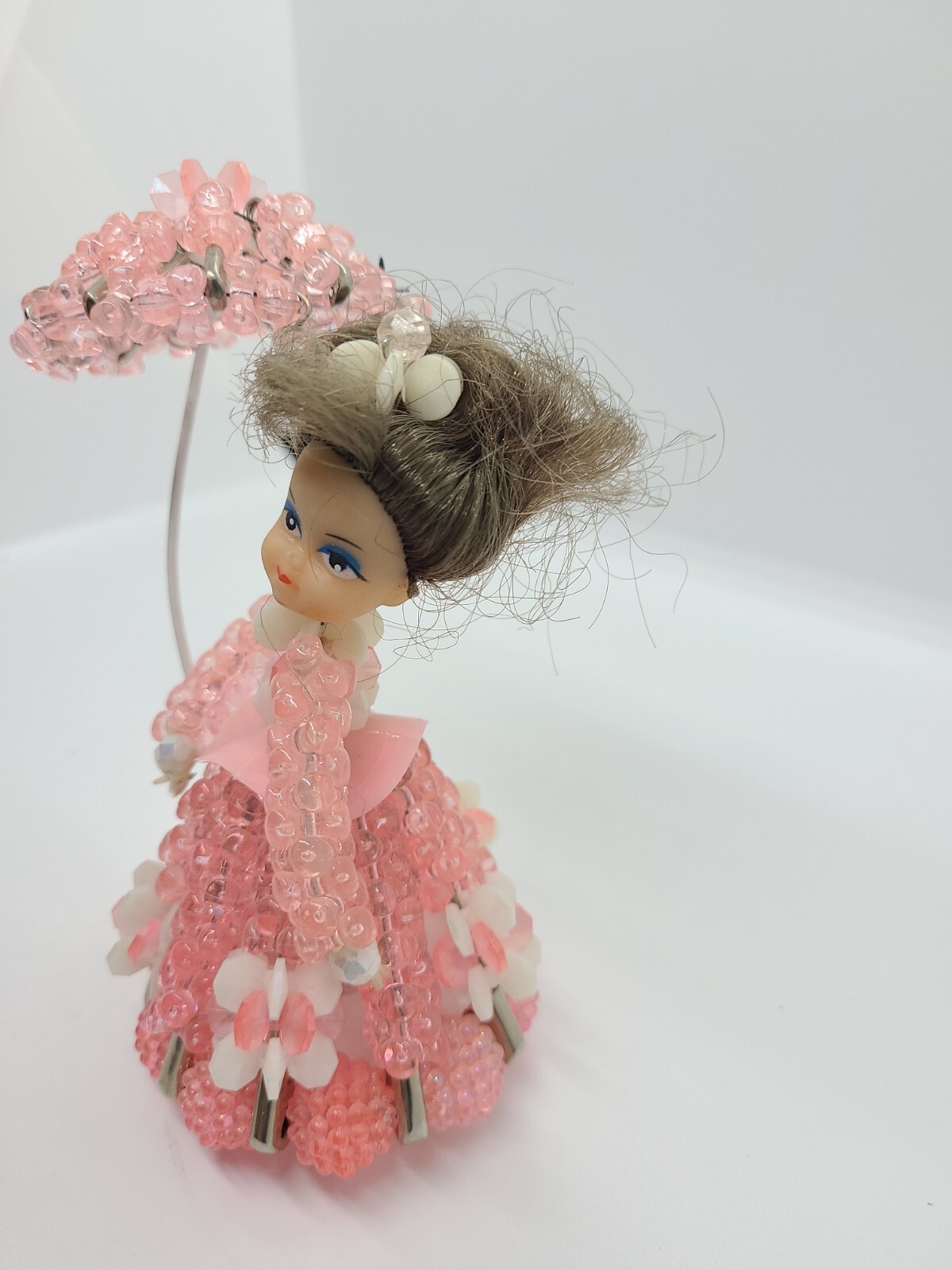 Vintage Handmade Safety Pin and Bead Doll With Umbrella