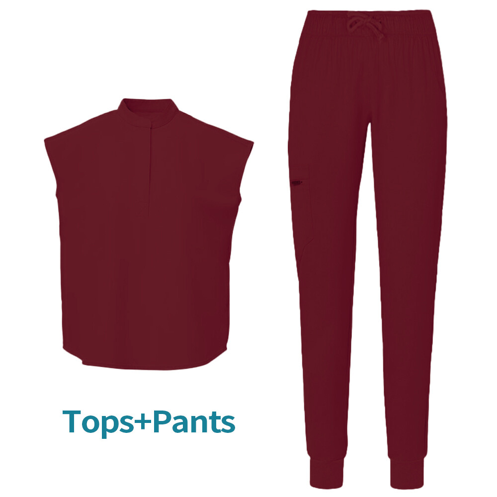 Women Scrub Sets Stretch Jogger Drawstring Pants Nurse Uniform Medical Workware