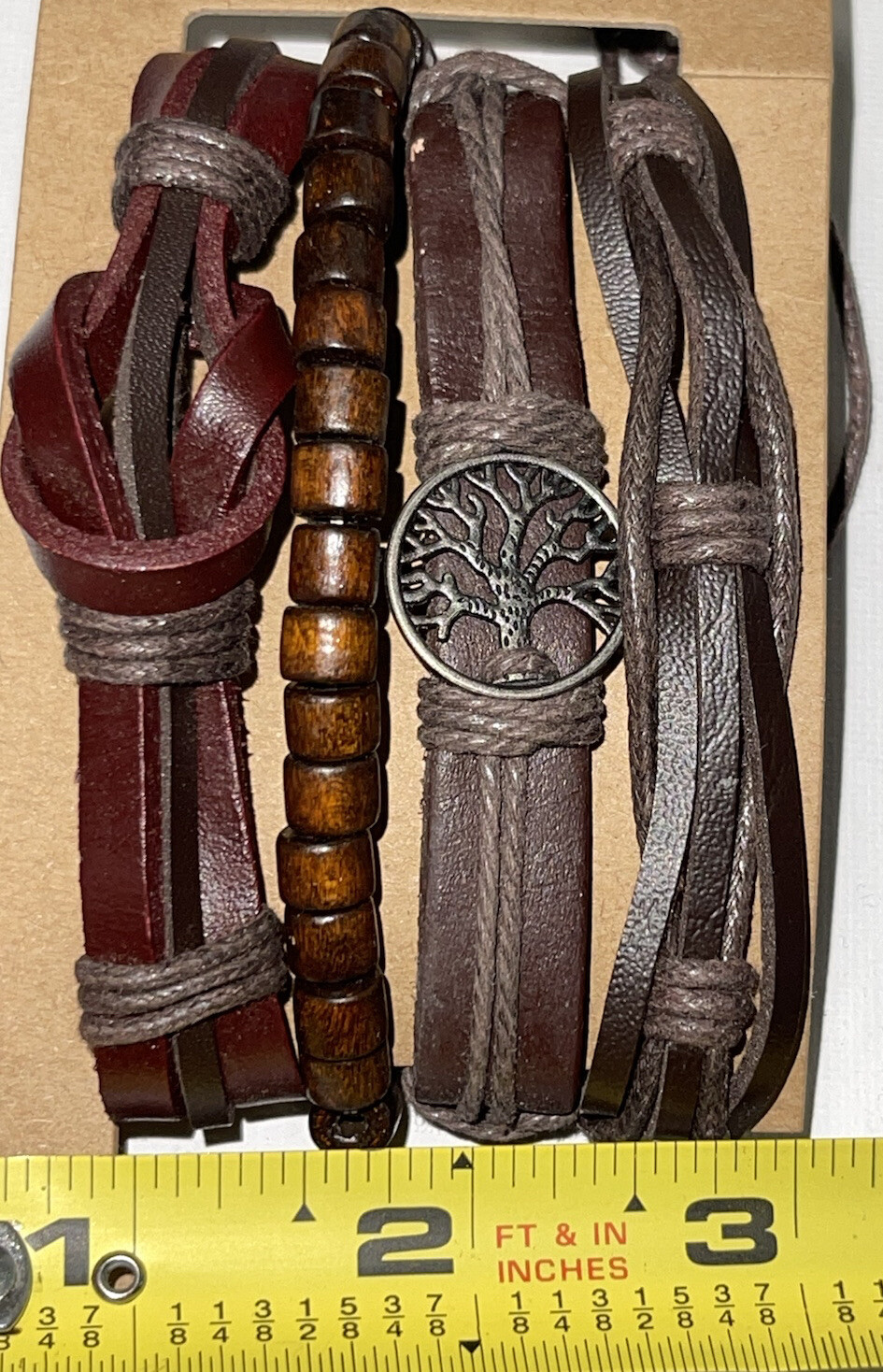 как выглядит Leather Braiden Bead Set Of Four Bracelet Unisex Men Women Tree Of Life Metal фото