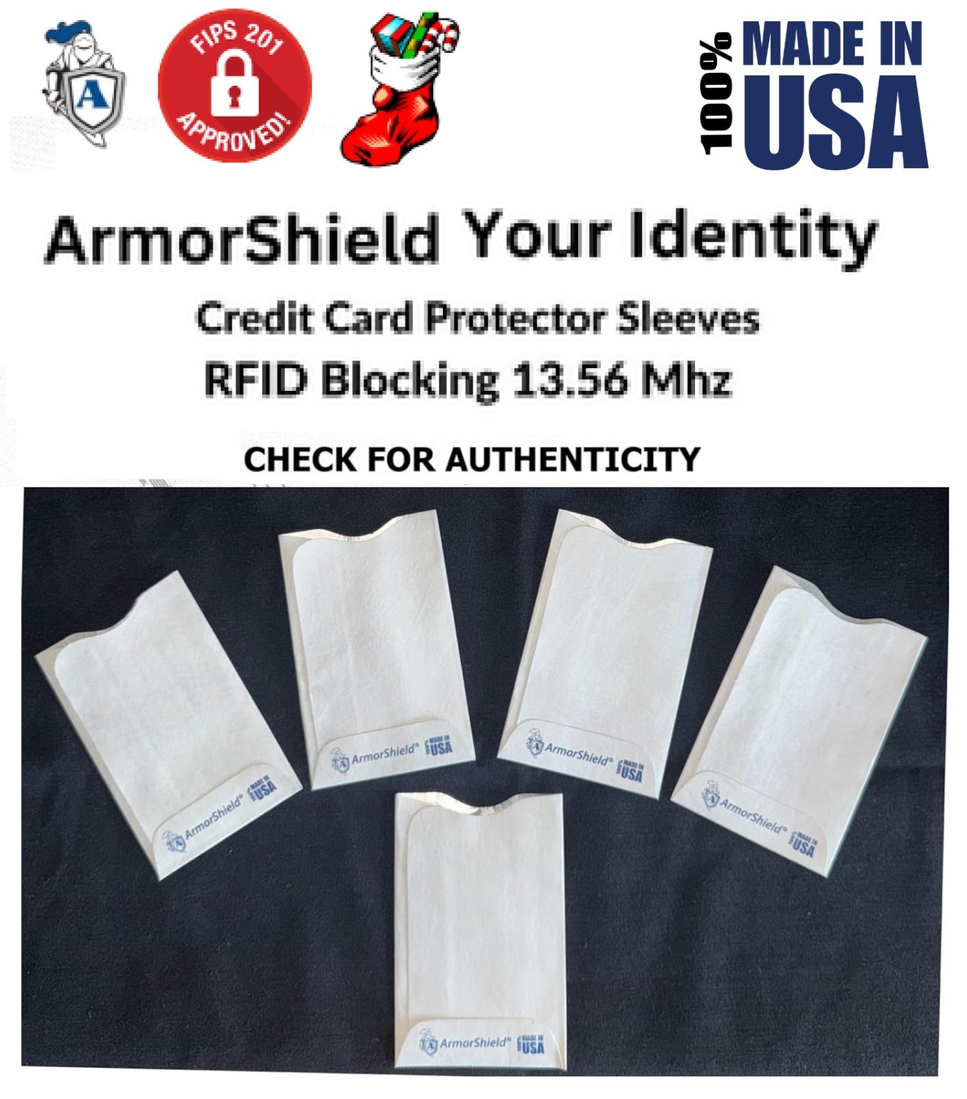 5 Pak RFID Blocking Sleeves Credit Card Protector - 100 MADE IN USA