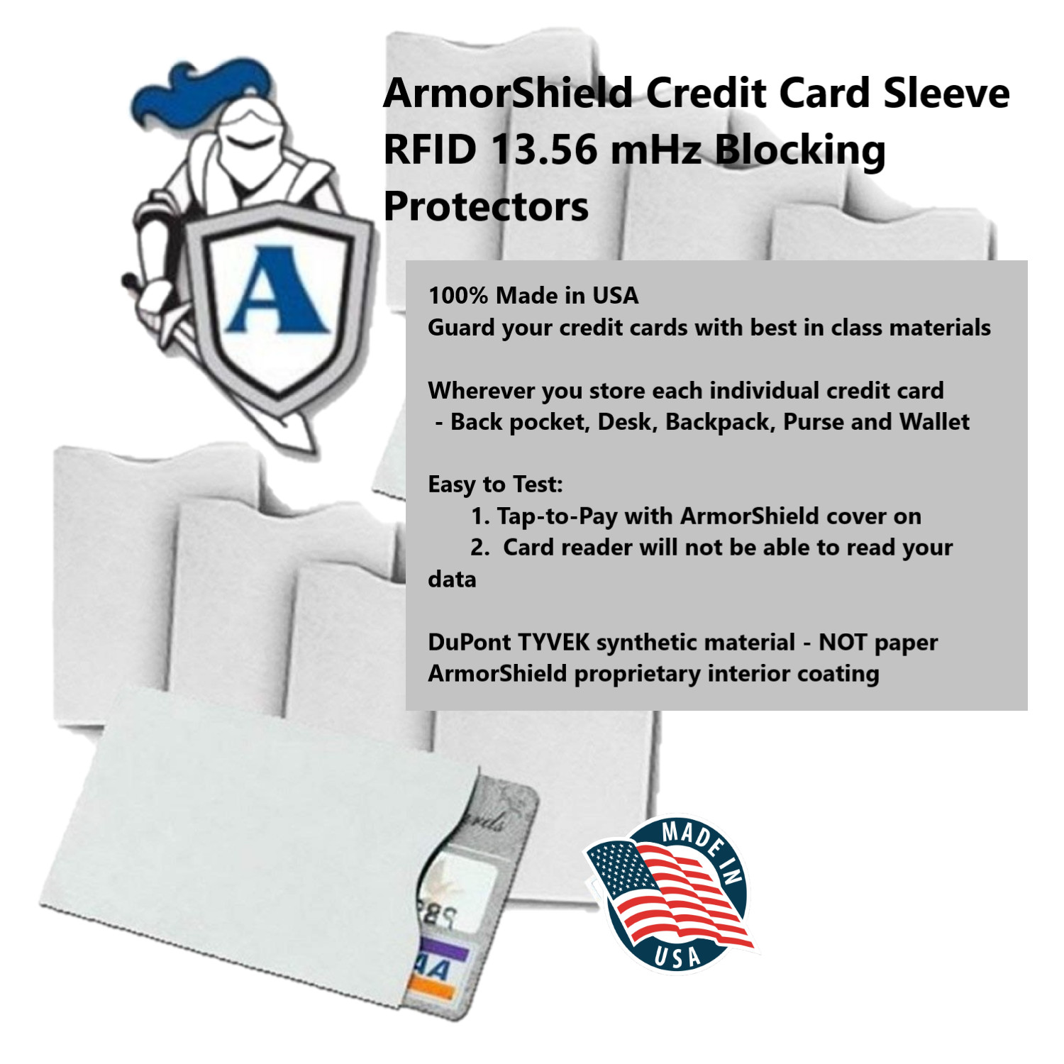 как выглядит 5 Pak RFID Blocking Sleeves Credit Card Protector - 100 MADE IN USA фото