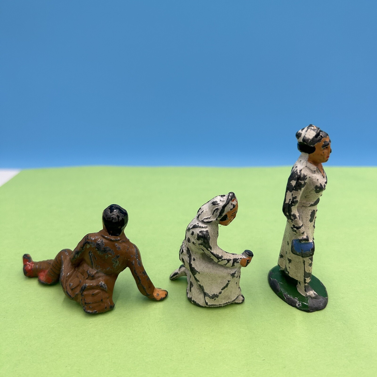 3 Barclay Manoil War Soldier Wounded Red Cross Nurse Medical Bag Cup Dimestore