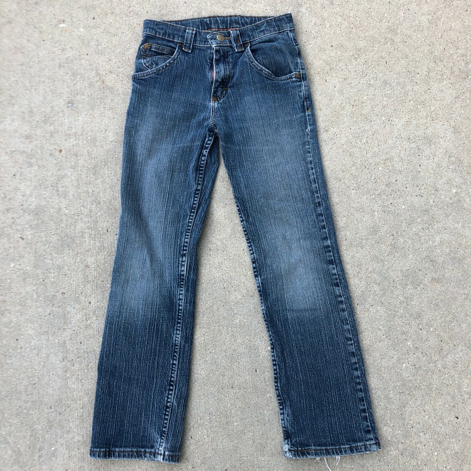 как выглядит Wrangler Blue Denim Boys Size 12 Slim Solid 5SCBWM2 Straight Leg Jeans фото