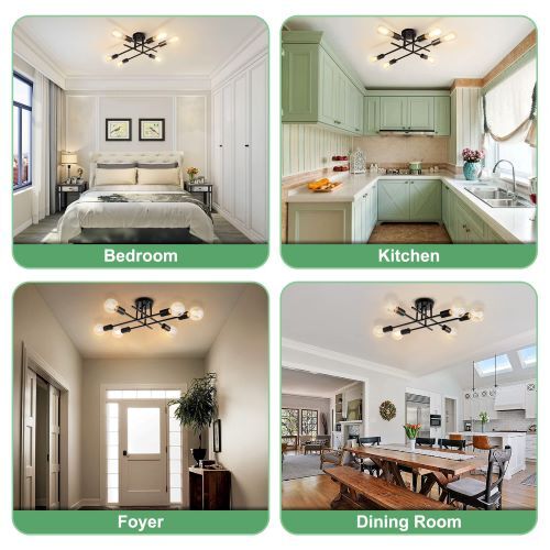 как выглядит Black Industrial Chandelier,6-Lights Semi Flush Mount Ceiling Light Fixture фото