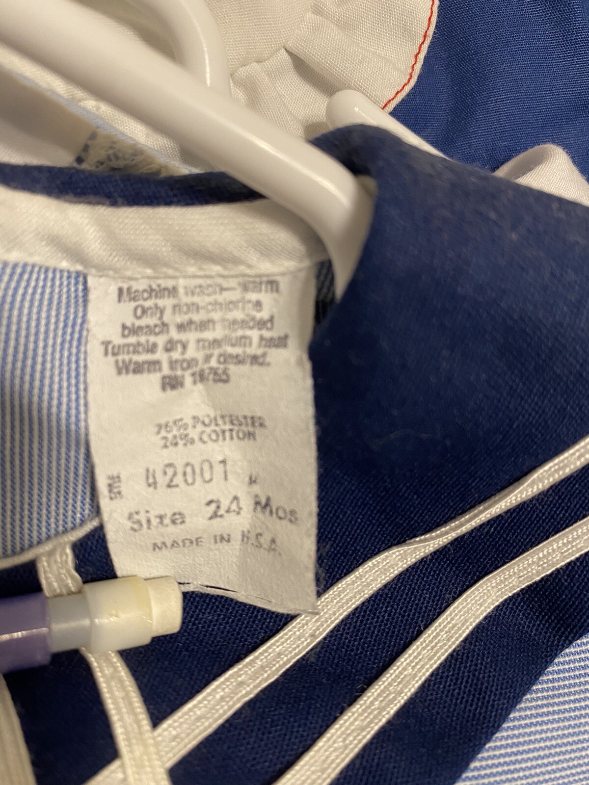 как выглядит Vintage Girls Dress Size 24 Months Nautical Dark Light Blue Collar Puff Sleeves фото