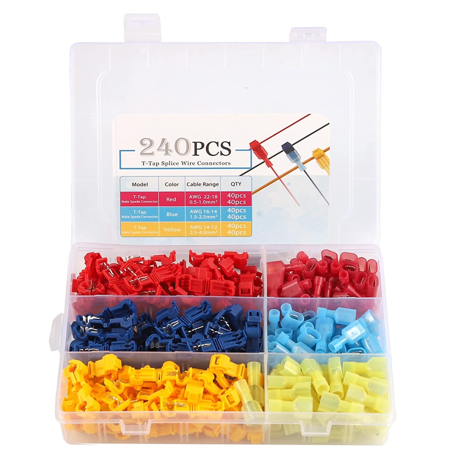 240PCS T-Taps Quick Splice Wire Connectors Insulated Spade Terminal Kit 22-10AWG