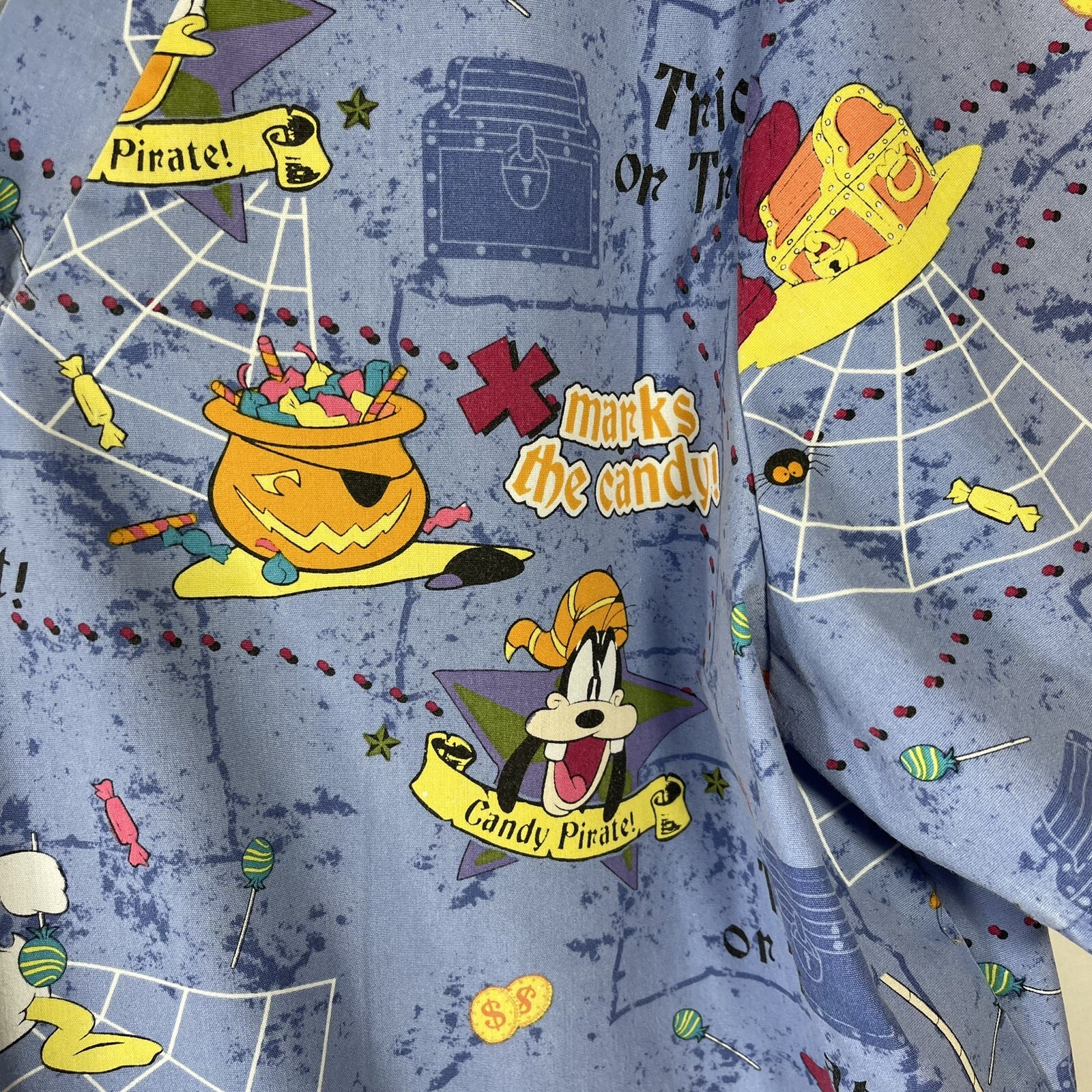 Wonderful World of Disney Large Halloween Scrub Top Purple Mickey Donald Goofy