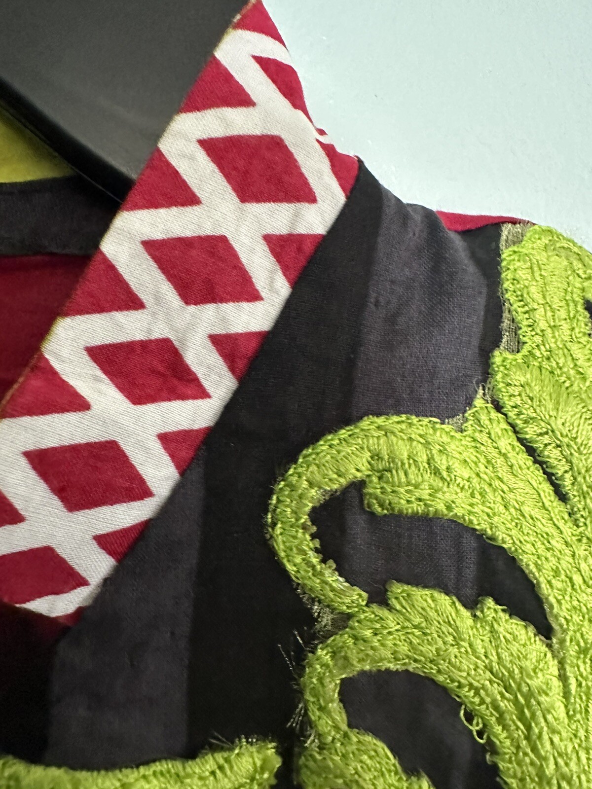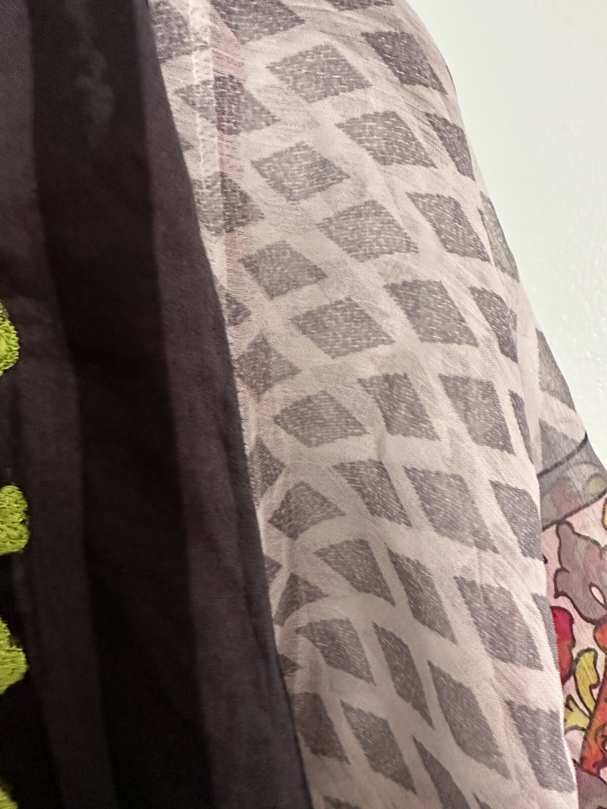 Pakistani lawn shirt with shafoon dopata black n multi color embroidery