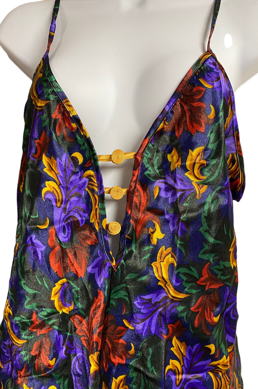 как выглядит Vintage 90s Cinema Etoile Nightgown Slip Colorful Floral Paisley Size Medium NWT фото