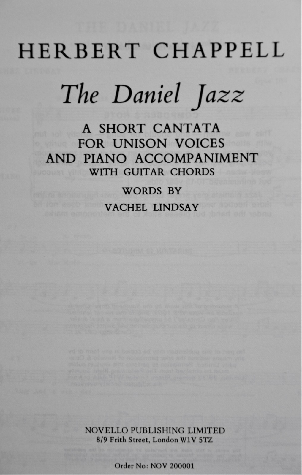 The Daniel Jazz Herbert Chappell. Cantata for Unison Voices and piano.
