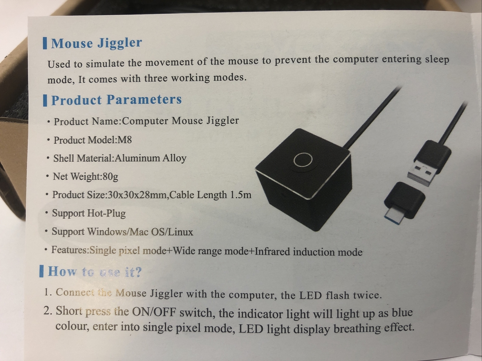 как выглядит AZMXDVP MOUSE JIGGLER-M8 SUPPORT WINDOWS/MAC OS/KNUX , THREE WORKING MODES фото