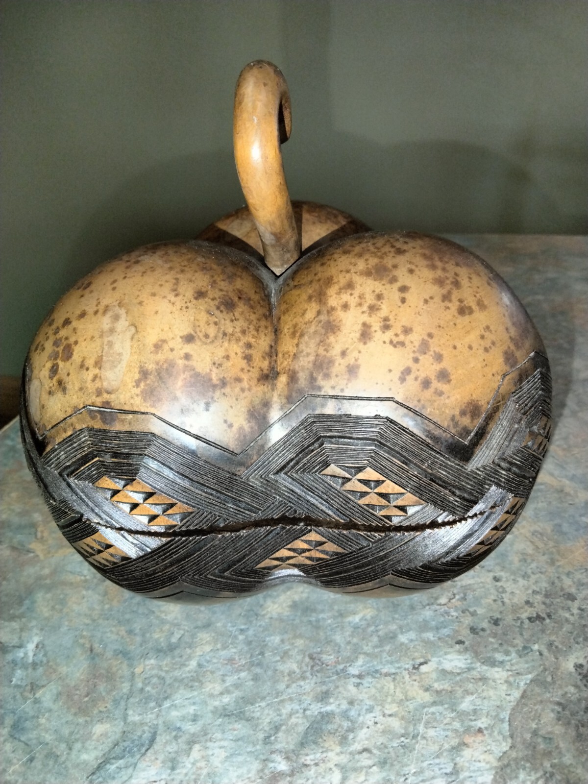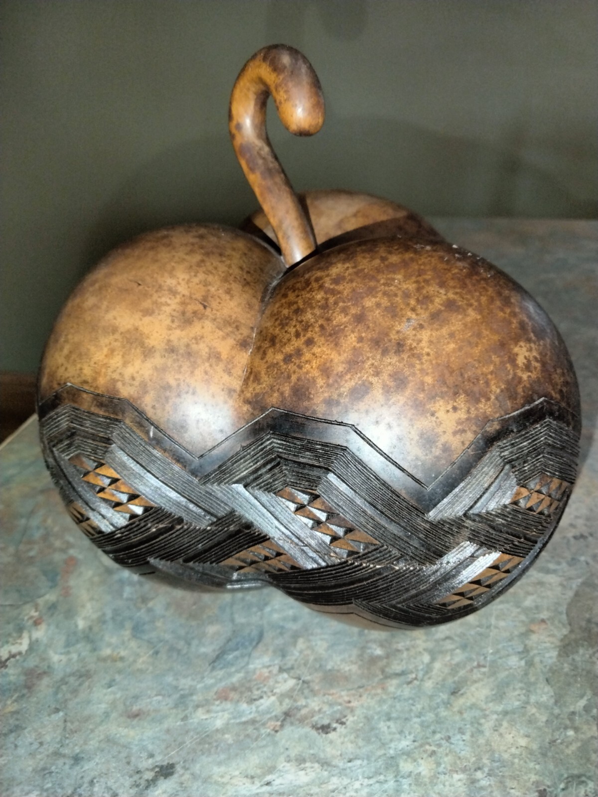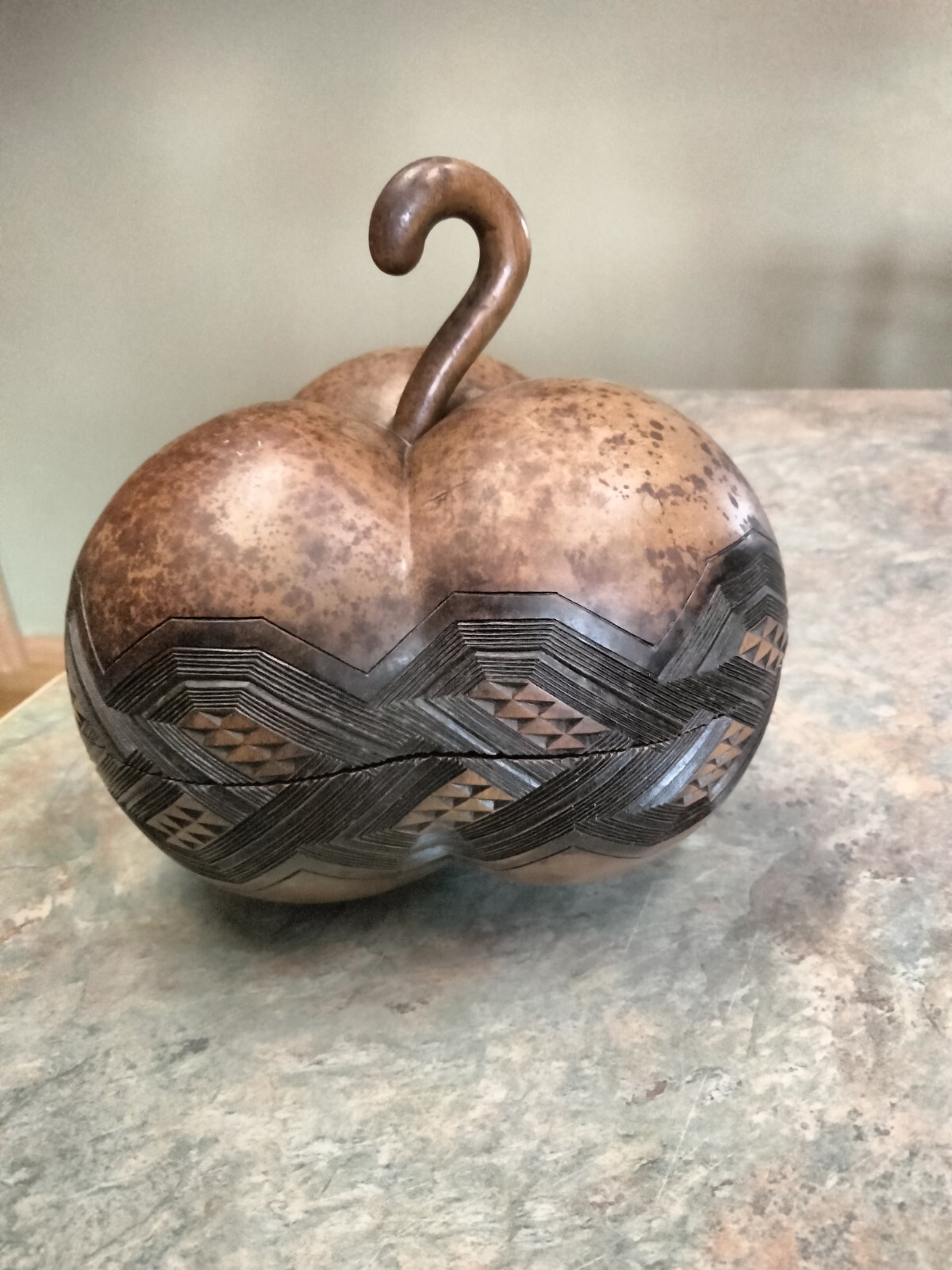 Hand Carved Pumpkin Gourd Dish With Lid Decor
