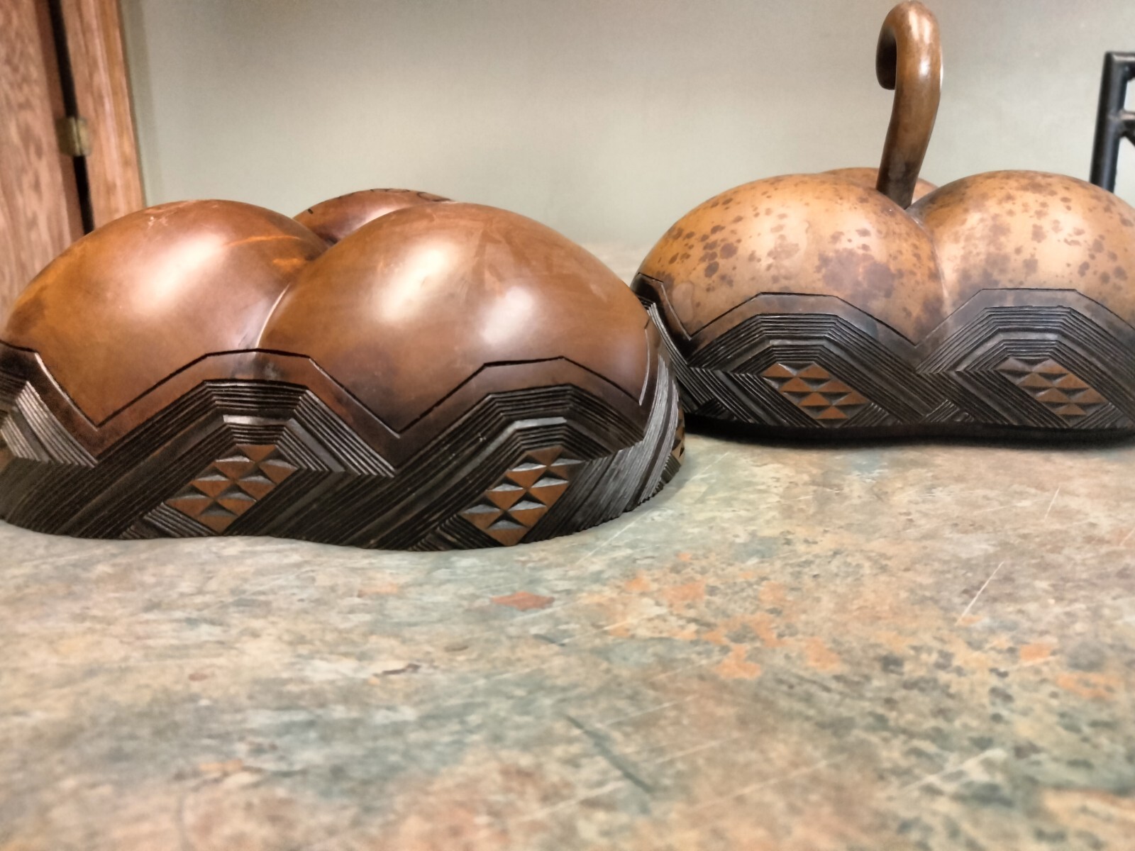 как выглядит Hand Carved Pumpkin Gourd Dish With Lid Decor фото