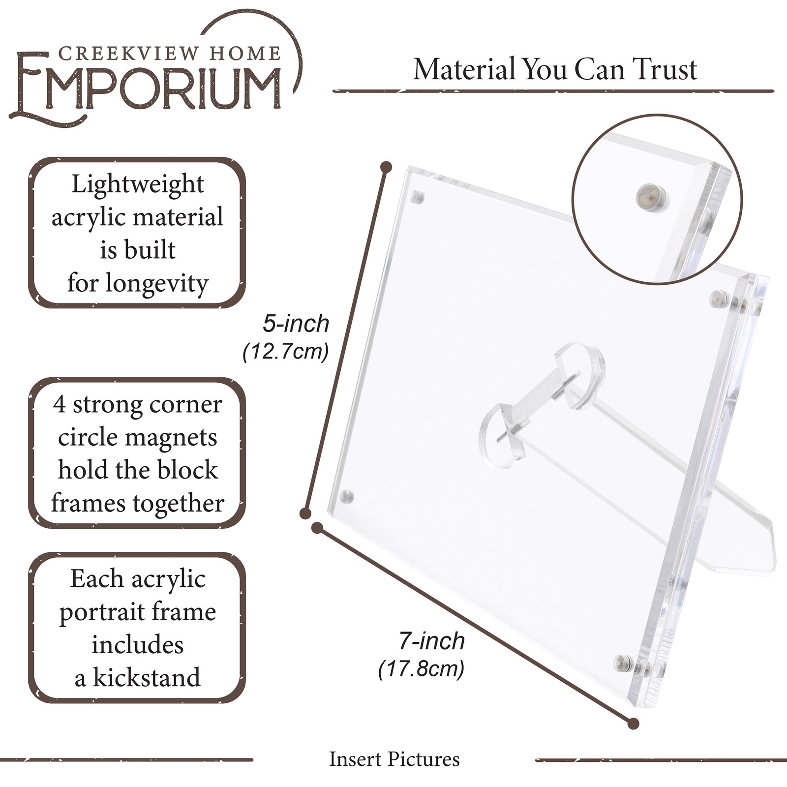 Creekview Home Emporium 5x7in Sturdy Clear Magnetic Acrylic Picture Frames