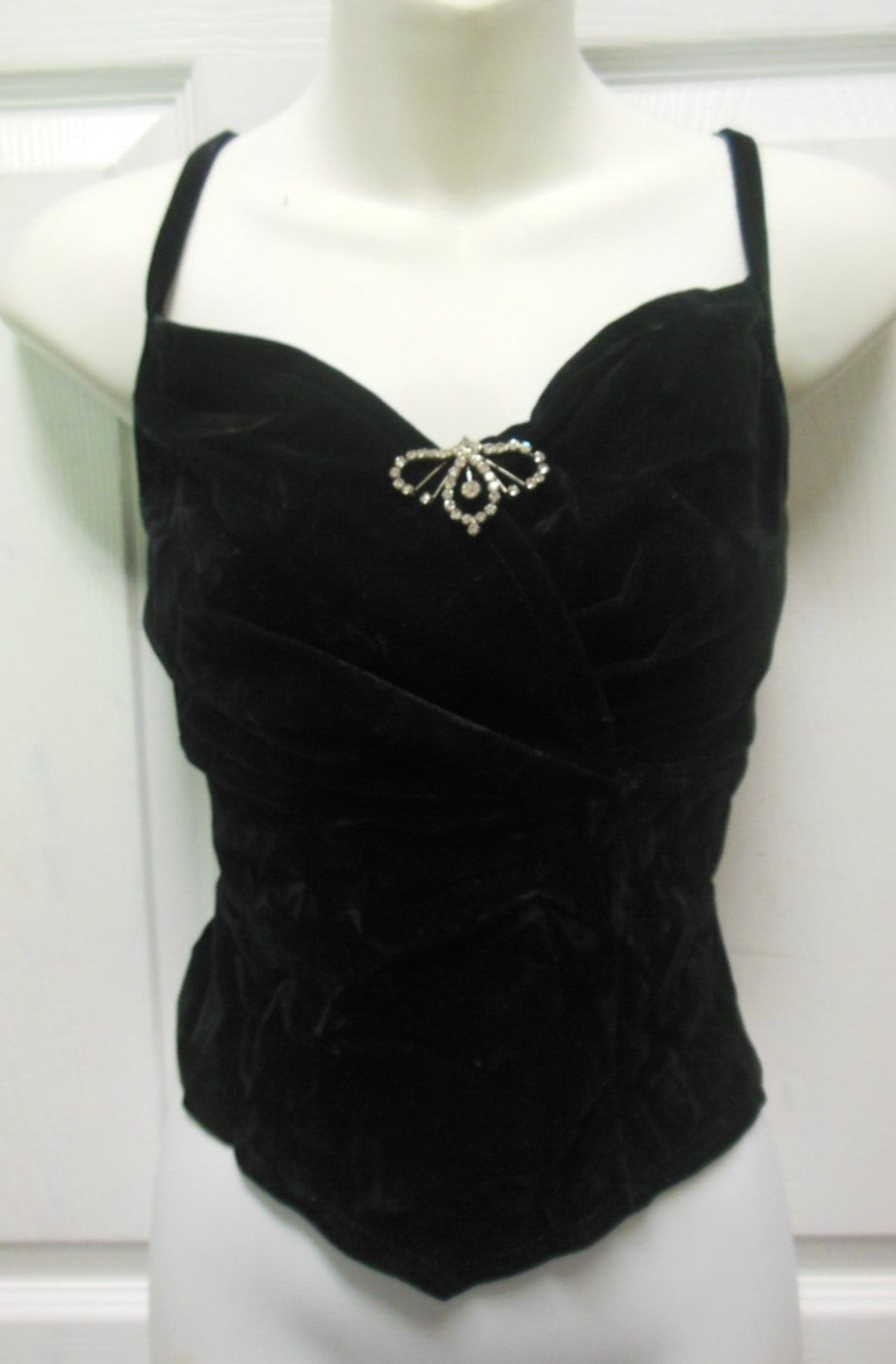 NWOT Designer Sample Black wrapfront camisole basque rhinestone accent Sm Adult