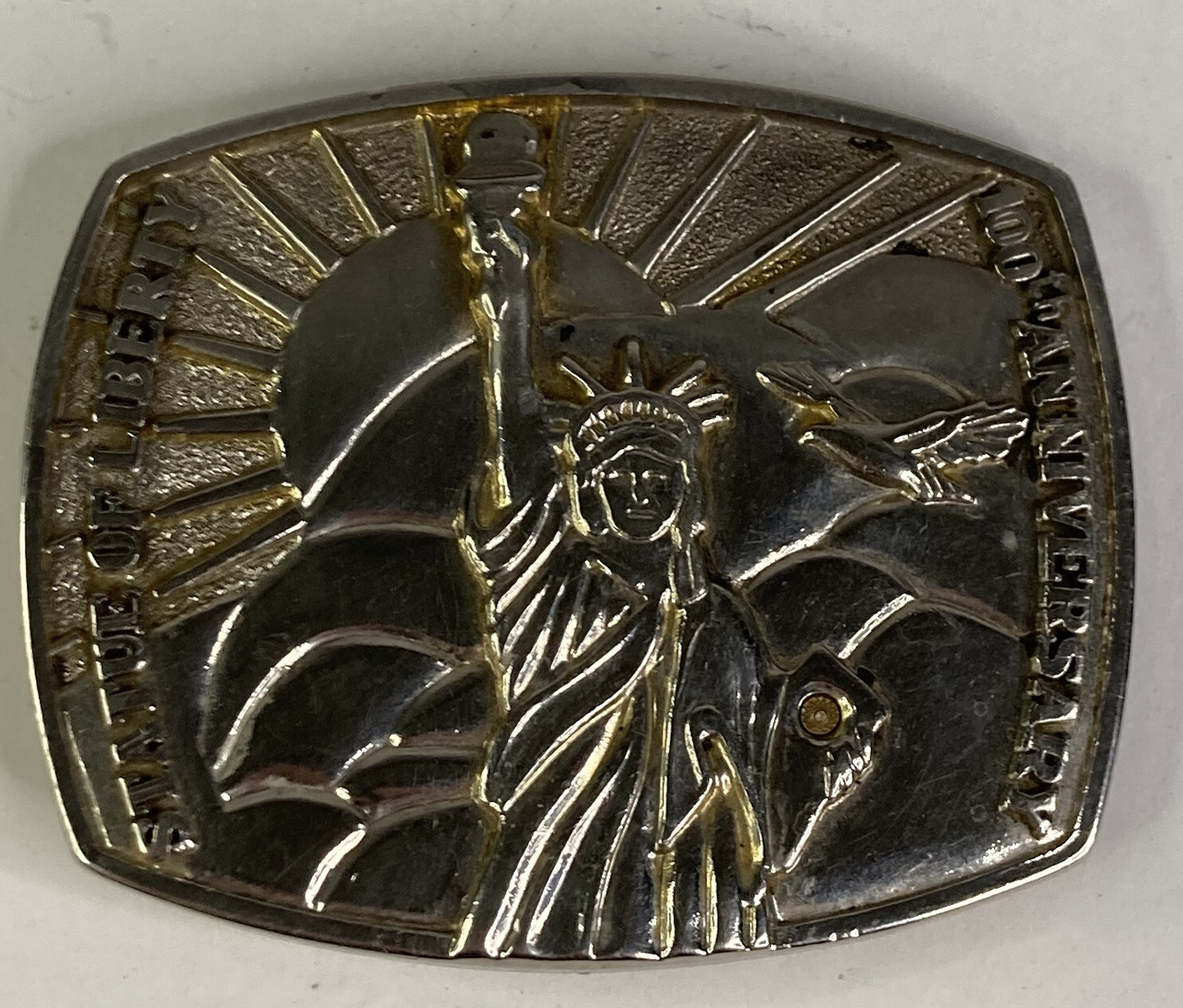 Large Metal 100th Anniversary Statue of Liberty 3 Rectangle Belt Buckle