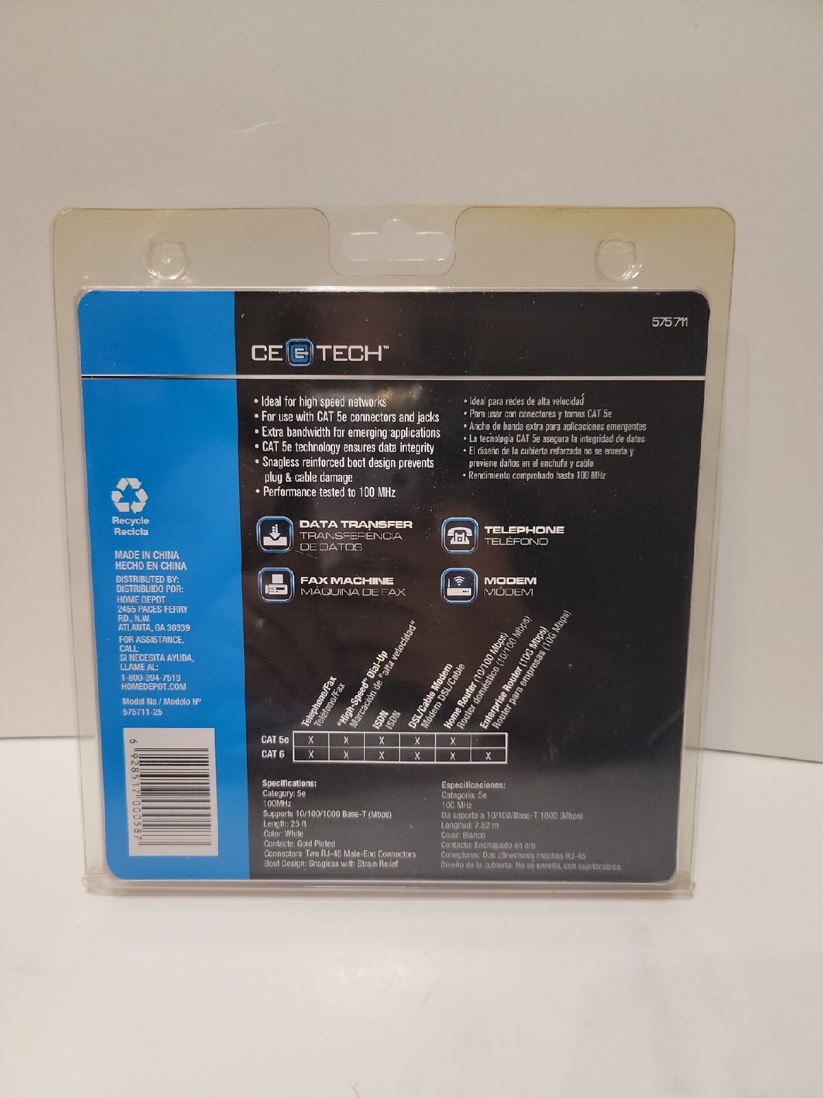 CE Tech Cat 5e White Patch Cord 25 Ft New Sealed