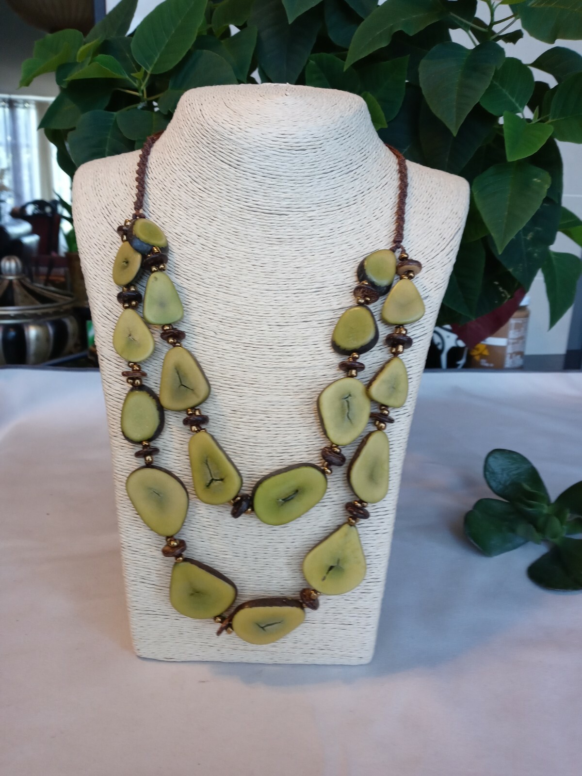 Light Green Handcrafted Tagua Nut Organic Necklace 2 Strands, Boutique ECUADOR