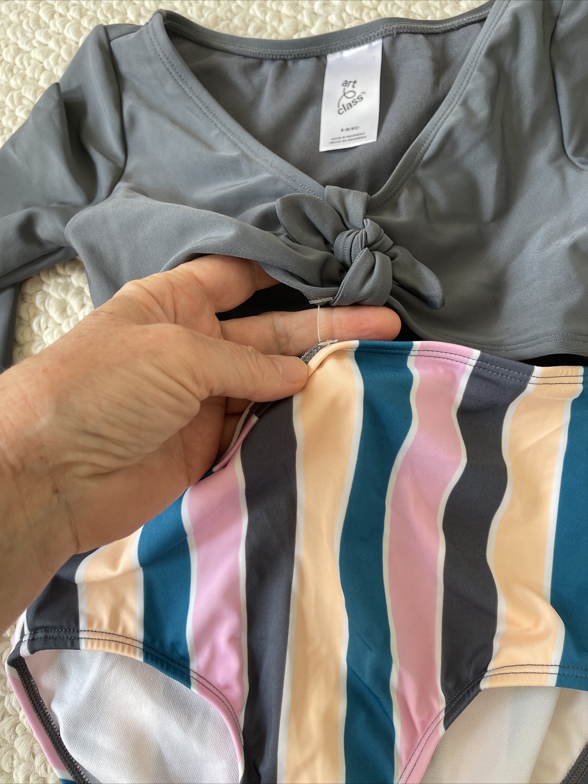Art Class Girls Cut Out S 6/6X Swimsuit Striped Rash Guard Long Sleeve Bow