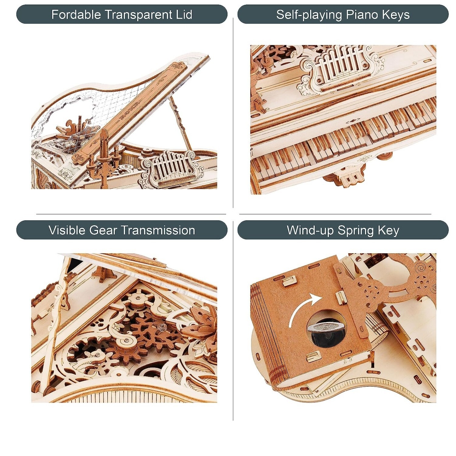 как выглядит ROKR Magic Piano Mechanical Music Box Melody 3D Wooden Puzzle Adults Model Gift фото
