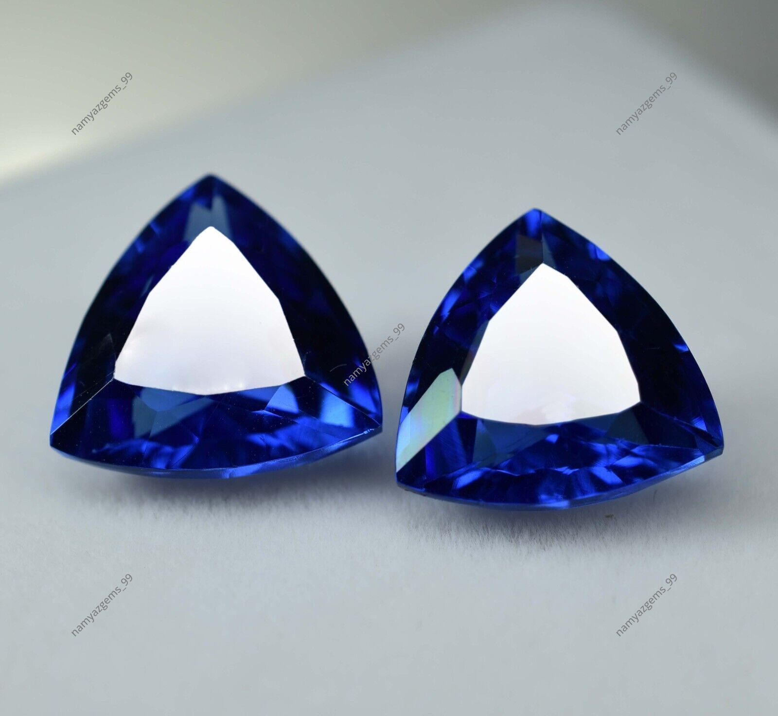 как выглядит 16.80 Ct Natural Blue Tanzanite CERTIFIED Trillion Cut Loose Gemstone Pair фото