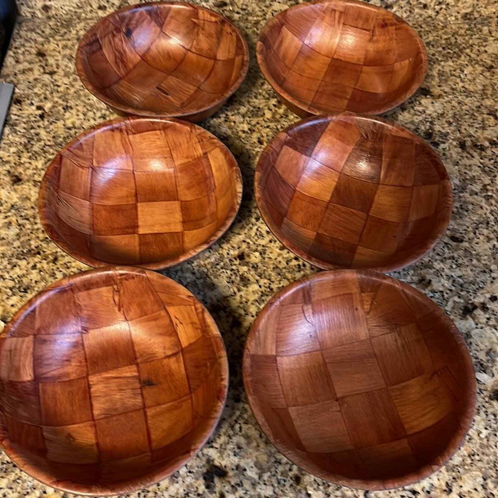 Vintage Wooden Parquet Bowl Set