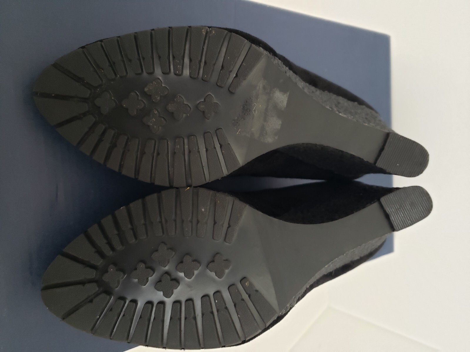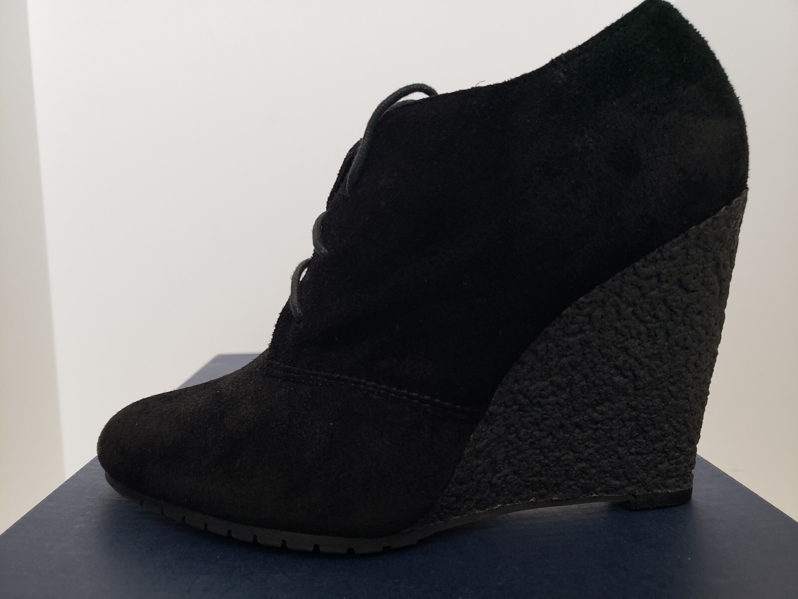 как выглядит Sam Edelman Effie suede wedge heel ankle boot, lace up, size 8M, imported black фото