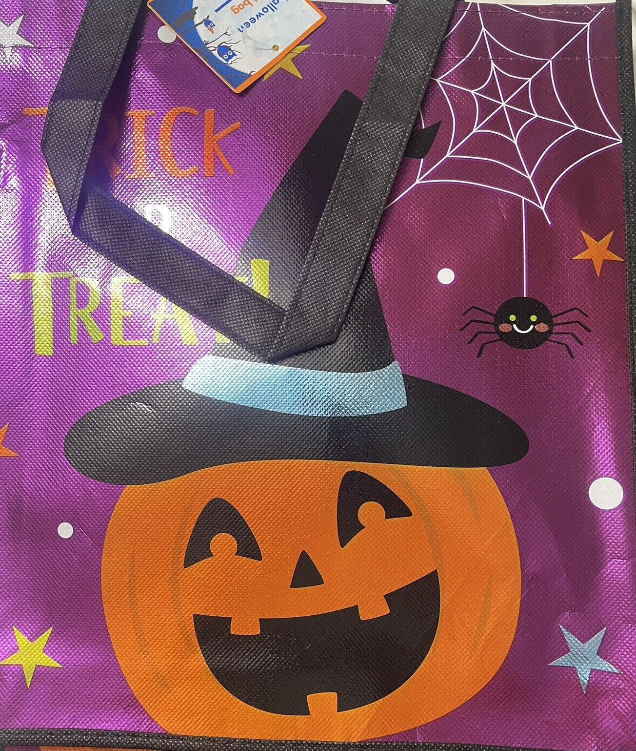 LOT OF 3 HUGE 12x13 HALLOWEEN TREAT PUMPKIN CANDY BAG WITH HANDLES NWT