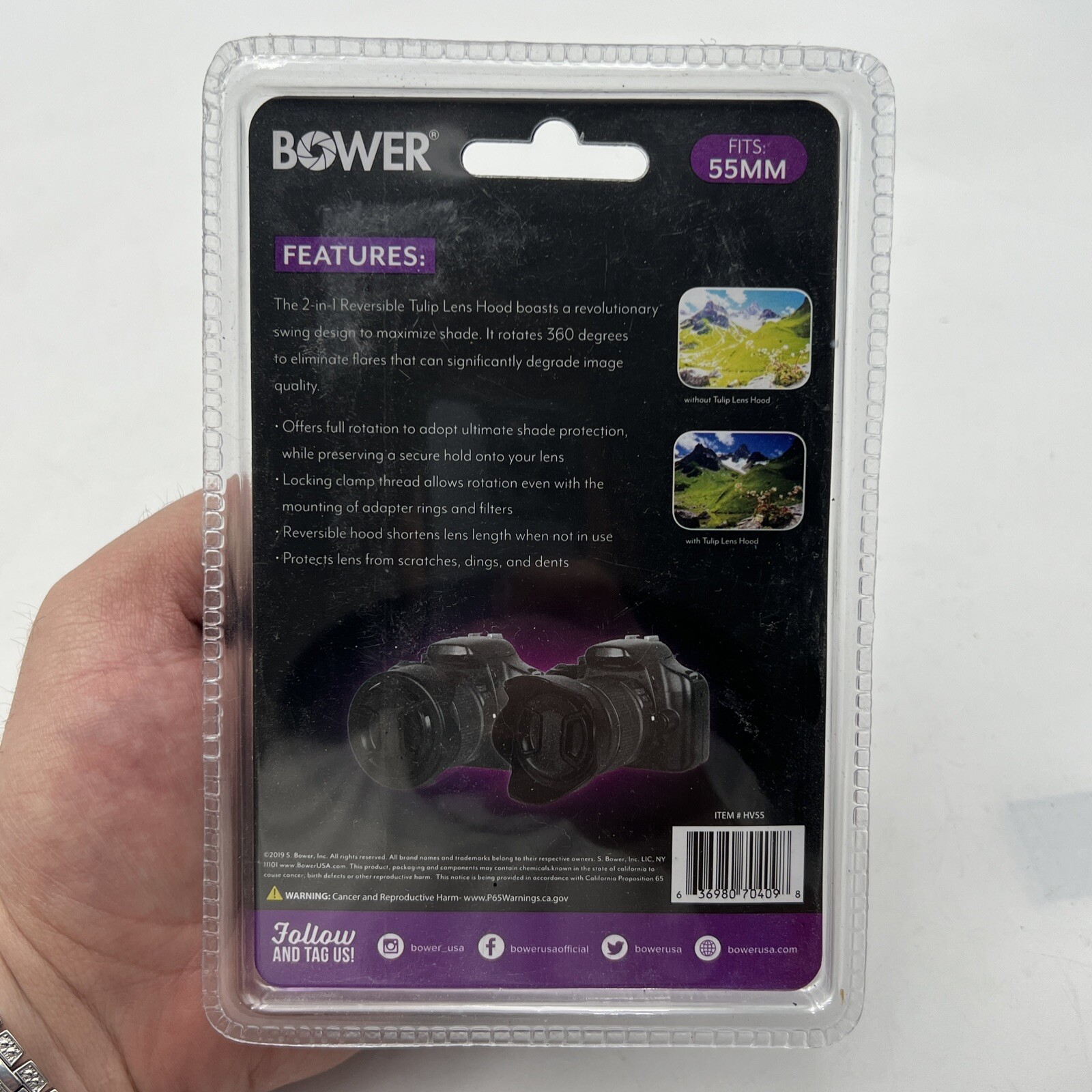 BOWER REVERSIBLE TULIP LENS HOOD KIT HV55 - HOOD PRO SNAP LENS CAP: FITS 55mm
