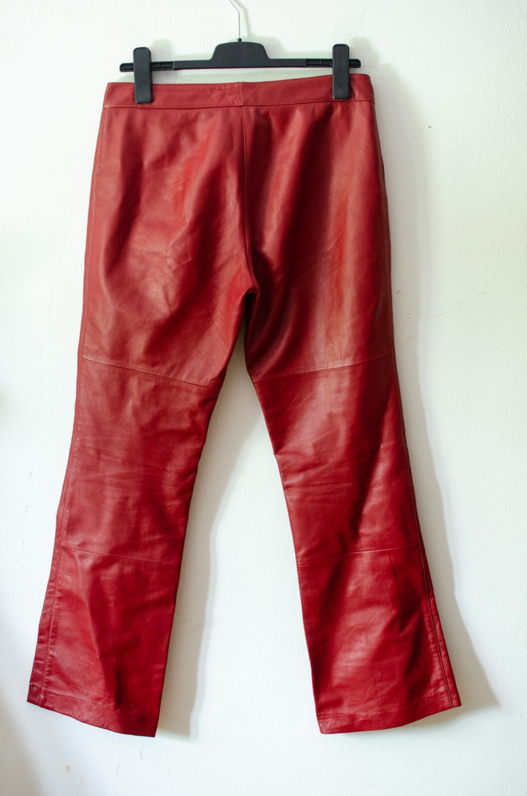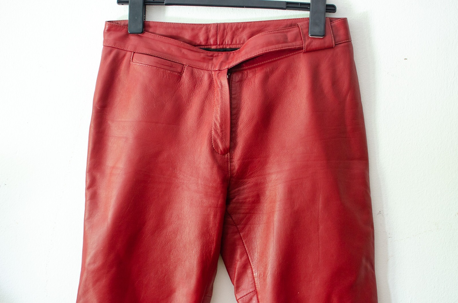 Vintage Red Genuine Real Leather Pants Soft Biker Trousers Size S/M 1990s 90s