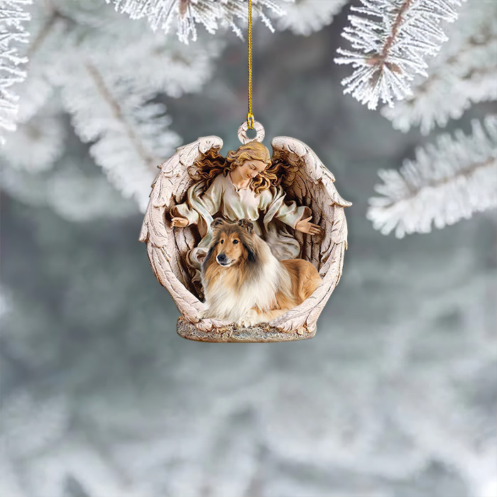 • Rough Collie Dog Sleeping Angel Ornament, Dog Angel Wings Christmas Ornament