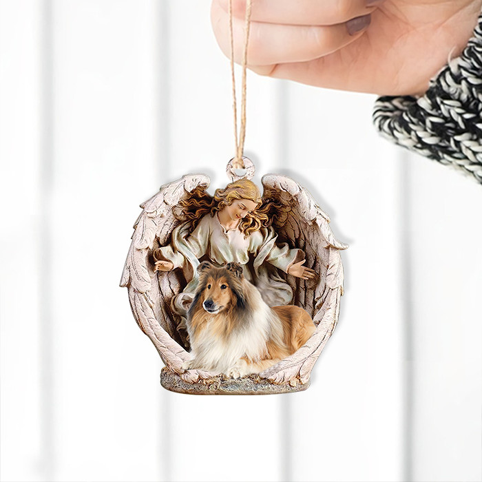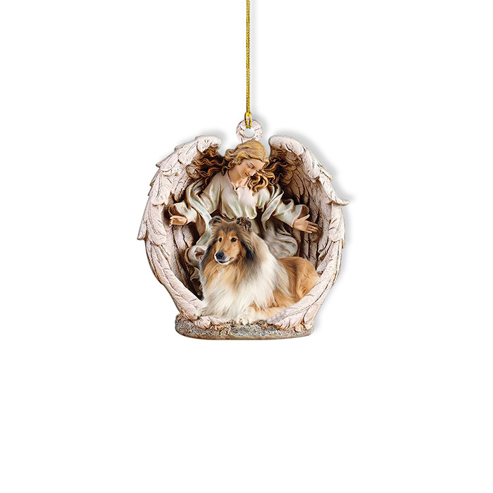 как выглядит Rough Collie Dog Sleeping Angel Ornament, Dog Angel Wings Christmas Ornament фото
