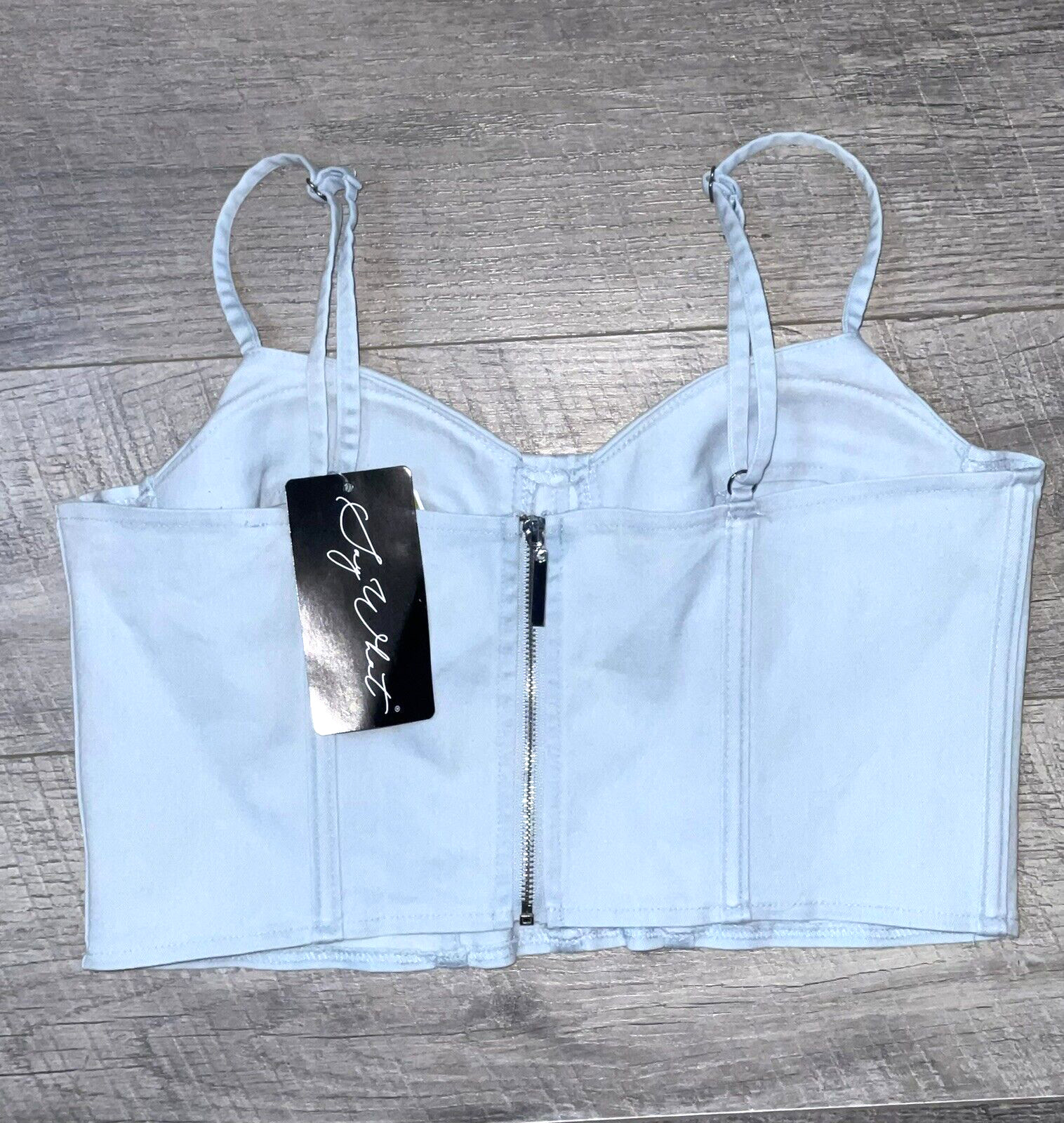 NWT Women M SAY WHAT Light Washed Denim Padded Cropped BUSTIER Top Adj Straps