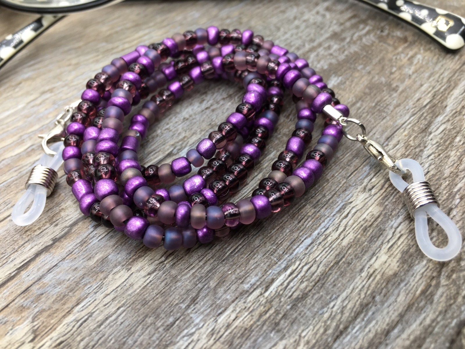 Homemade Eyeglasses Mask Lanyard Beautiful Purples 4mm Beads unisex